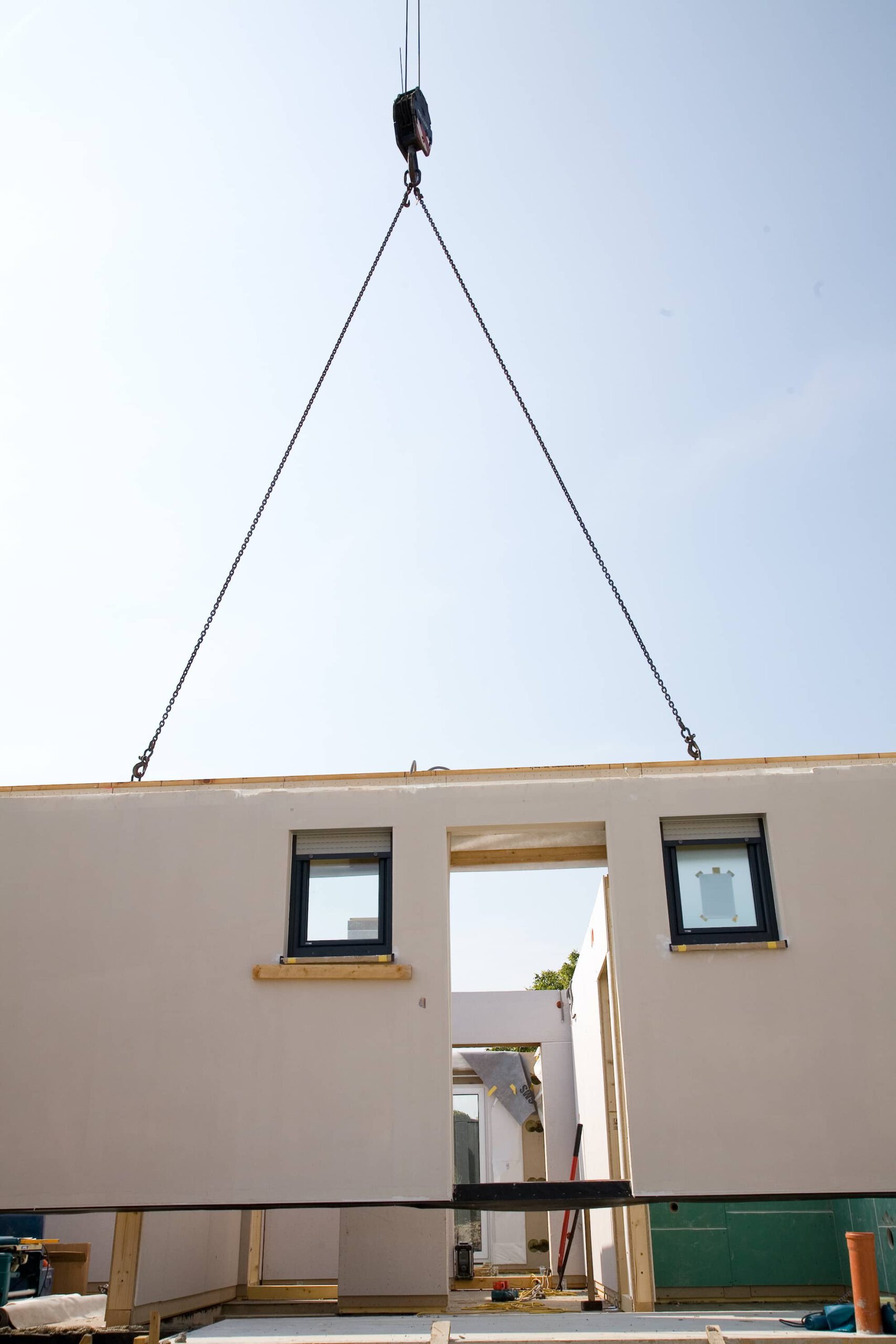 Nach der Fertigung erfolgt der Transport zu Ihrem Grundstück. Unser erfahrenes Team montiert Ihr Fertighaus schnell und effizient, sodass Sie rasch in Ihre neue Umgebung einziehen können.