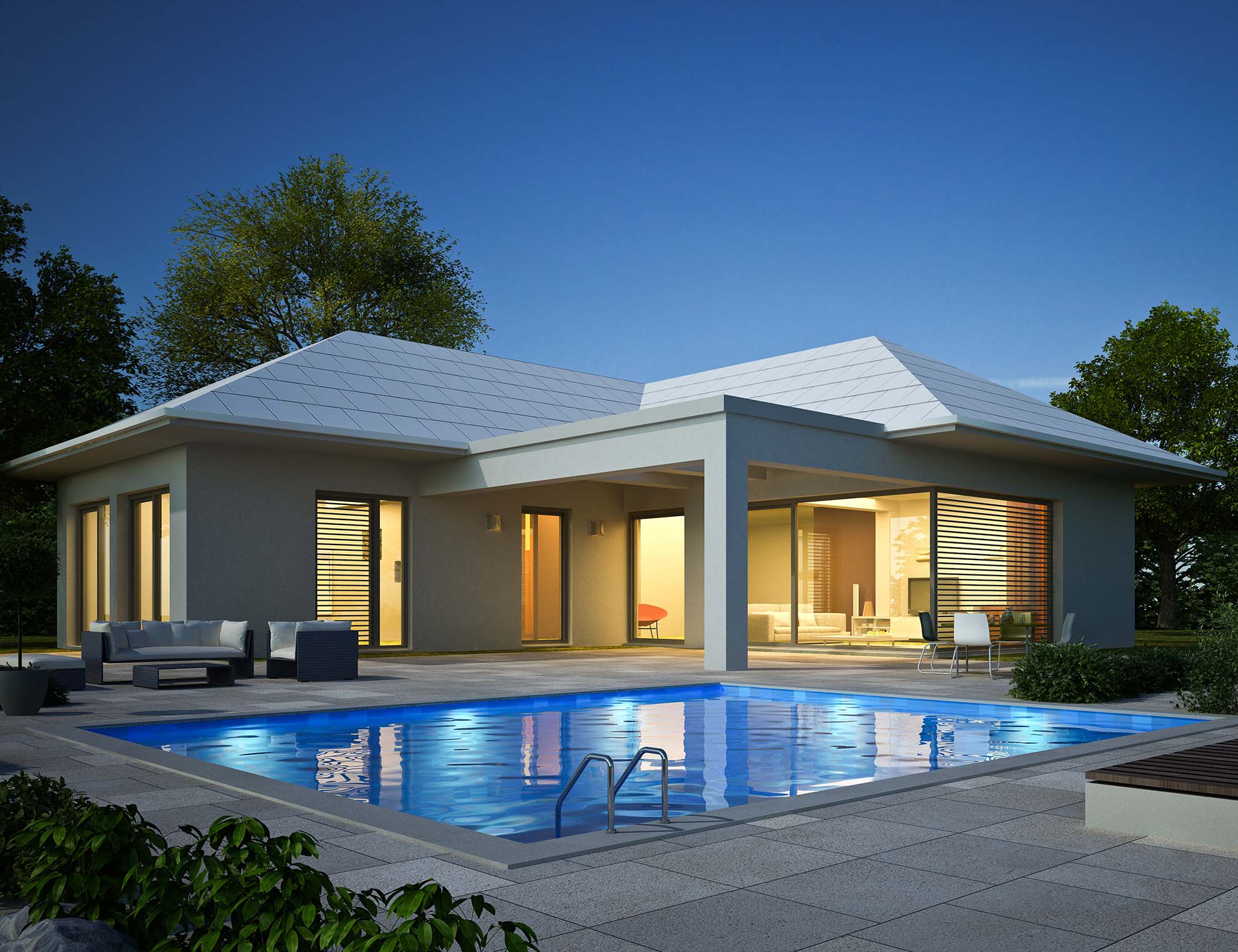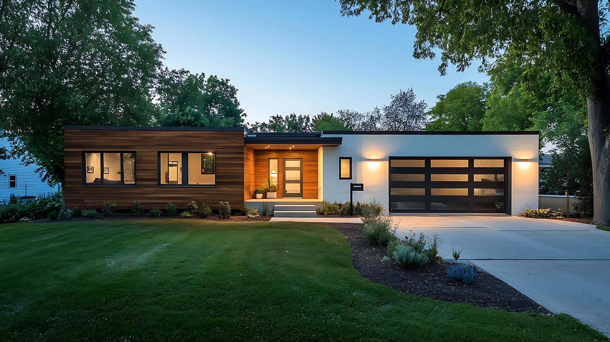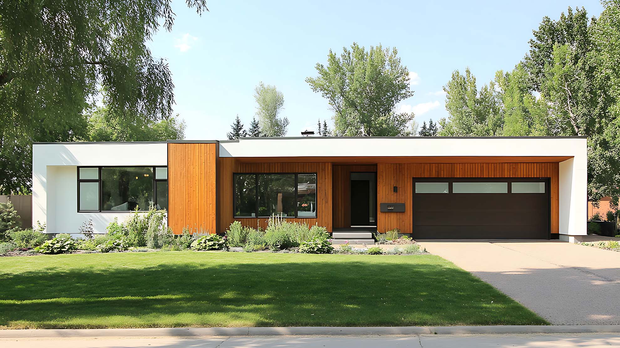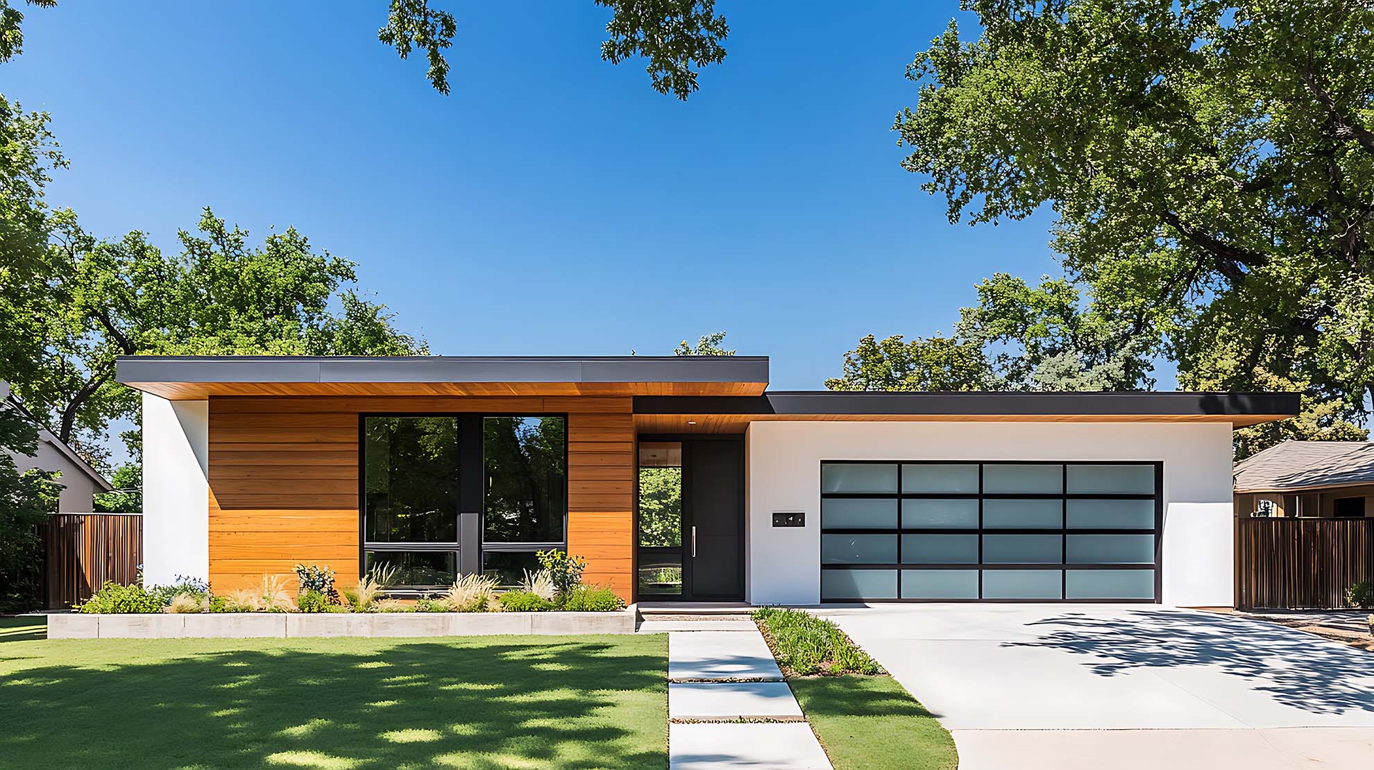 • Moderne Bungalows: Klare Linien, große Fenster und offene Grundrisse prägen diese Designs.