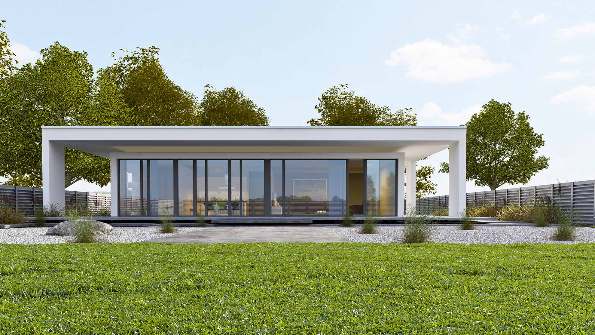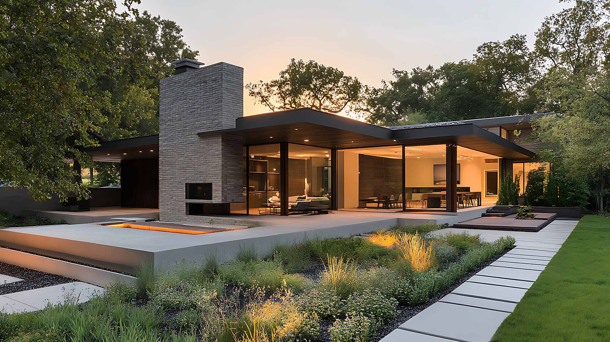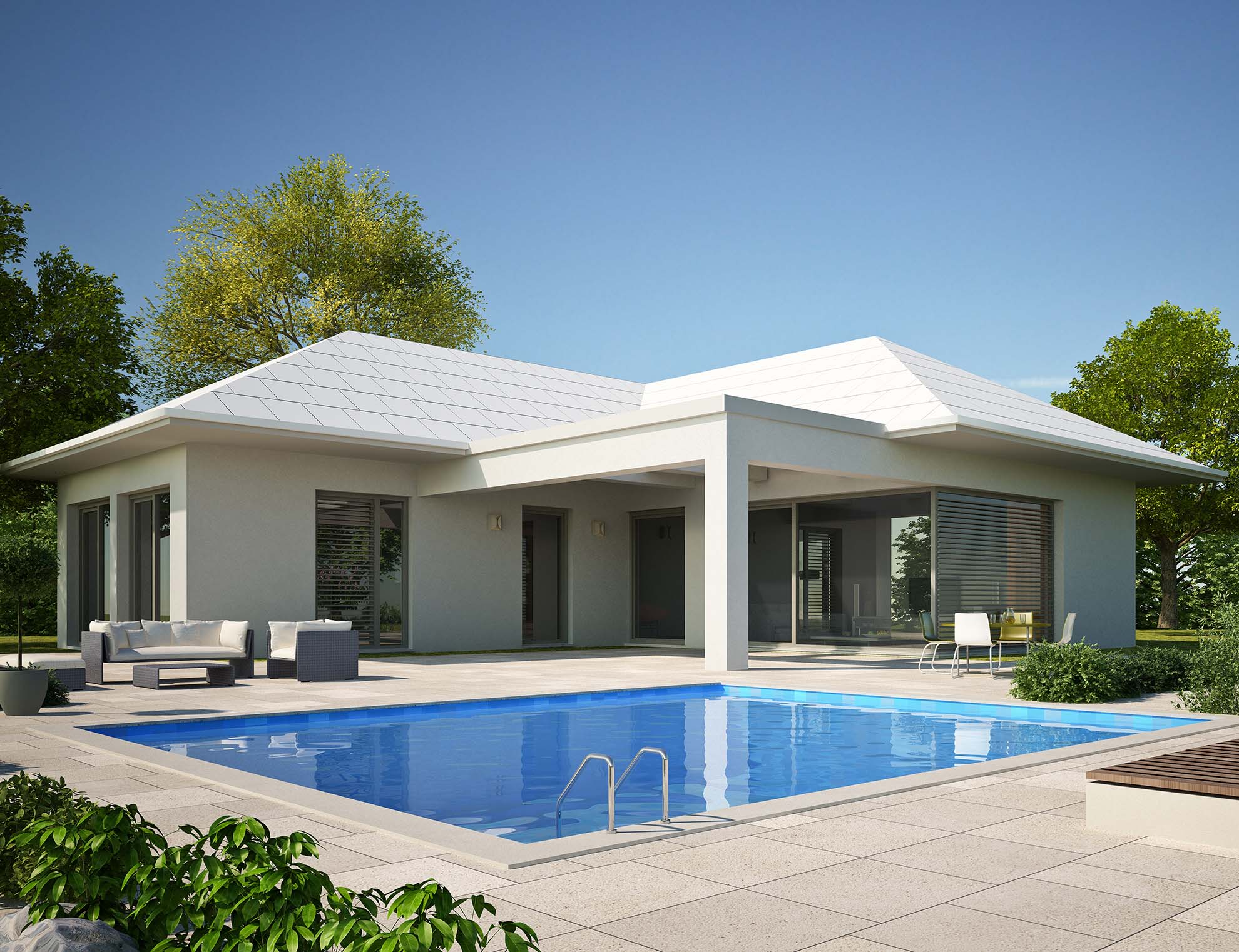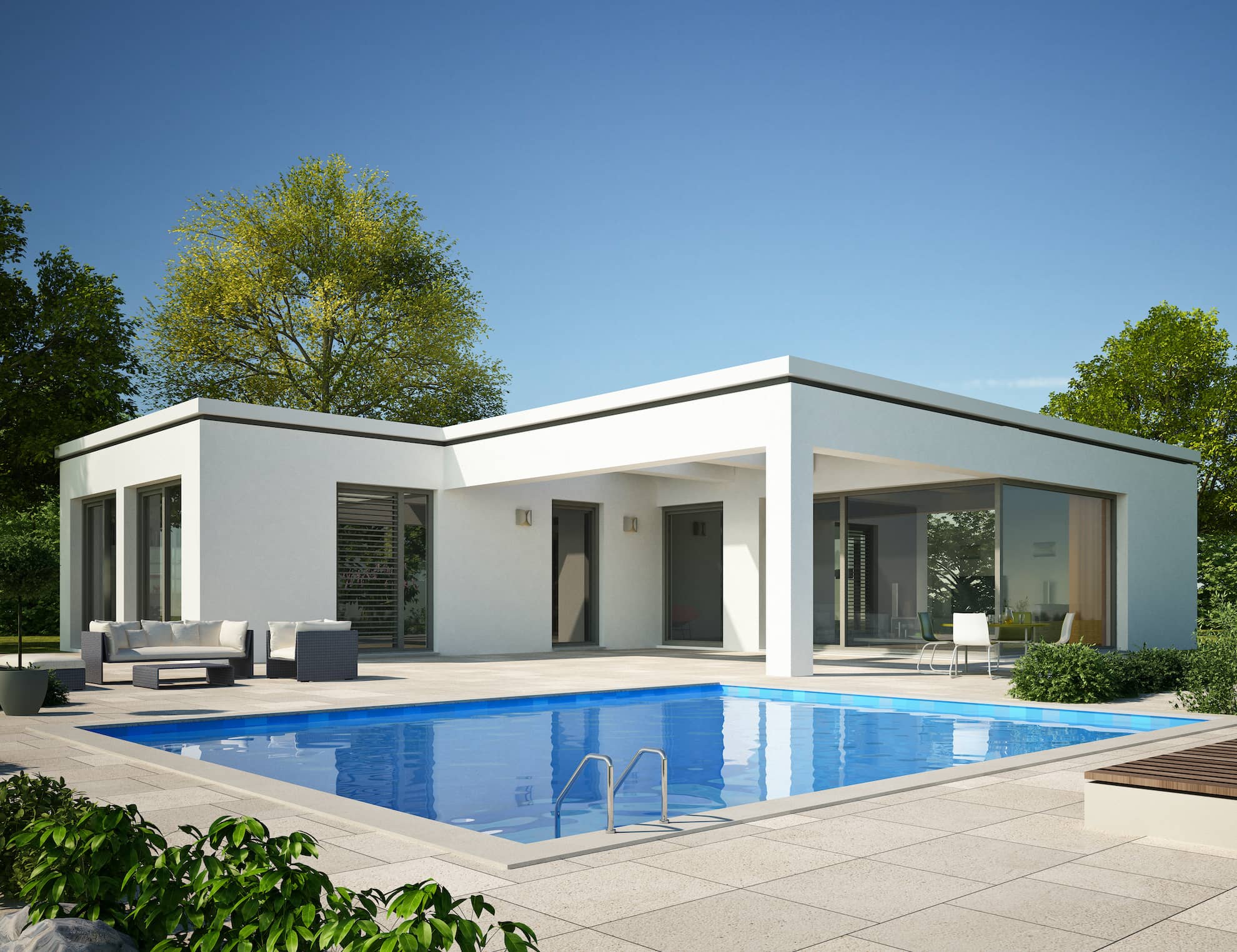 • Moderne Bungalows: Klare Linien, große Fenster und offene Grundrisse prägen diese Designs.