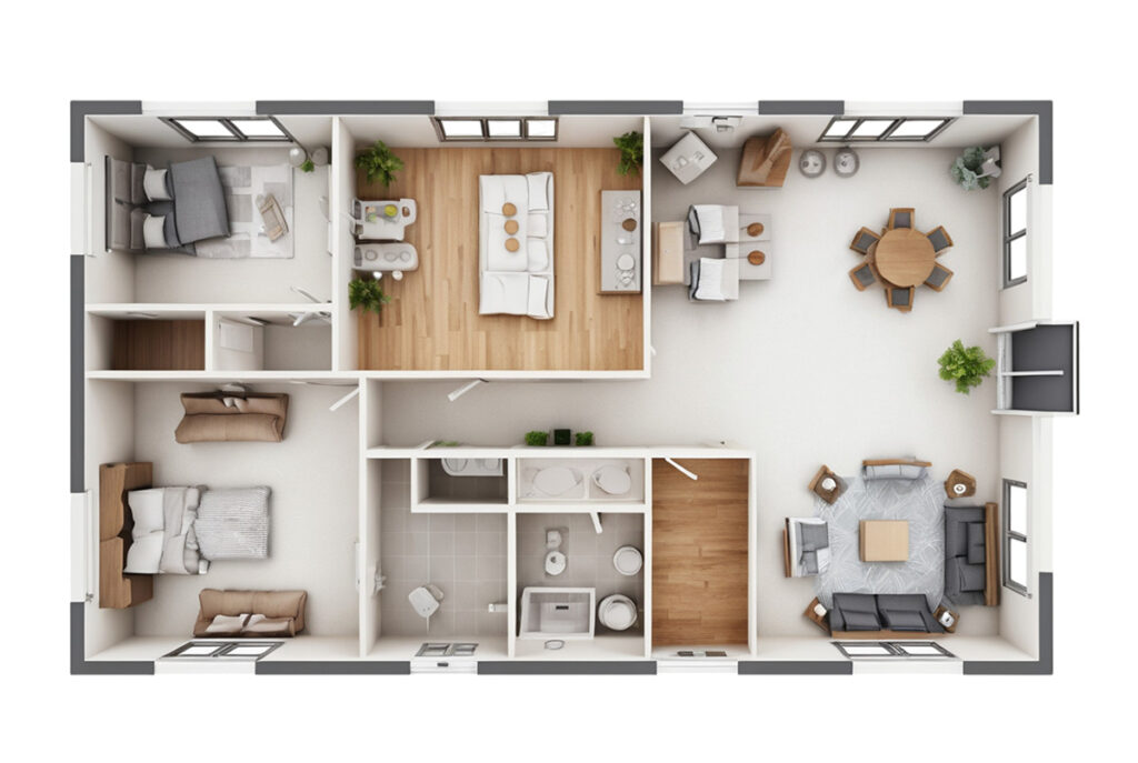 Wir beginnen mit einem ausführlichen Gespräch, um Ihre persönlichen Bedürfnisse und Vorstellungen zu ermitteln. Dazu gehören die Anzahl der Schlafzimmer, Badezimmer, die Größe der Wohnräume und spezielle Anforderungen wie Home-Office oder Gästezimmer.